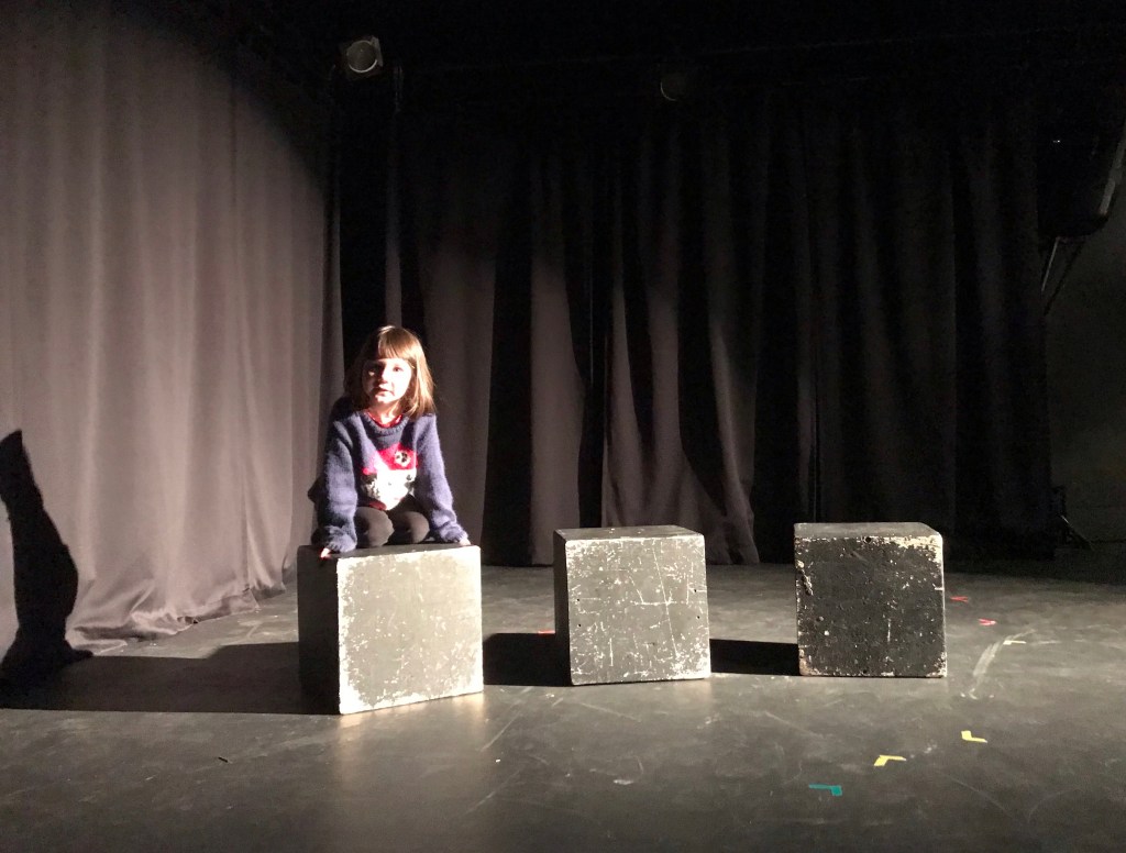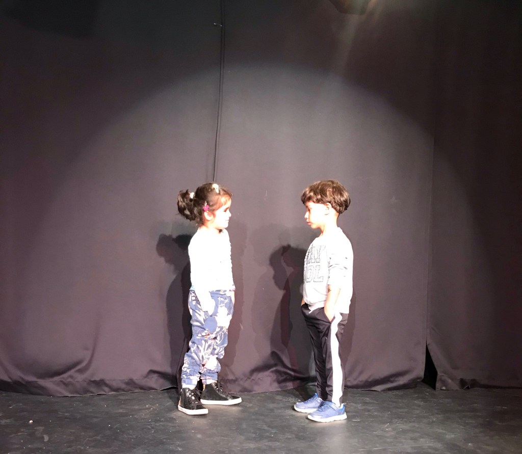 Dans un environnement toujours doux et bienveillant, mais plus actif et adapté à leur âge, les enfants apprennent également les concepts de «base» du théâtre, soit: la notion de présenter quelque chose à un petit public, le principe de l’écoute en tant que spectateur.trice, les rituels théâtraux comme les applaudissements et les saluts, puis, finalement, la magie de la scène, des coulisses, et de l’éclairage. À la fin de la session, les enfants peuvent aborder un plus large éventail d’actions, d’émotions, et de personnages, à travers des petits sketchs plus complets, avec une cohérence narrative plus soutenue.